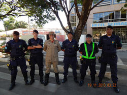 ![]() | ![]() Abordagens em praças.Operação em conjunto com as demais forças de segurança publica em praças e logradouros do município. | ![]() Operação em conjunto com as demais forças de segurança publica em praças e logradouros do município. |